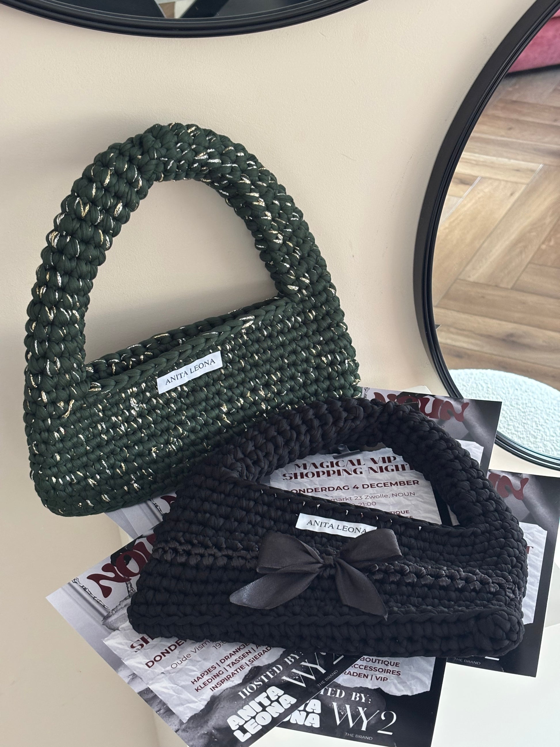 Deze elegante zwarte tas is dé finishing touch voor iedere feestelijke outfit. Afgewerkt met een stijlvol zwart lint en een prachtige strik.