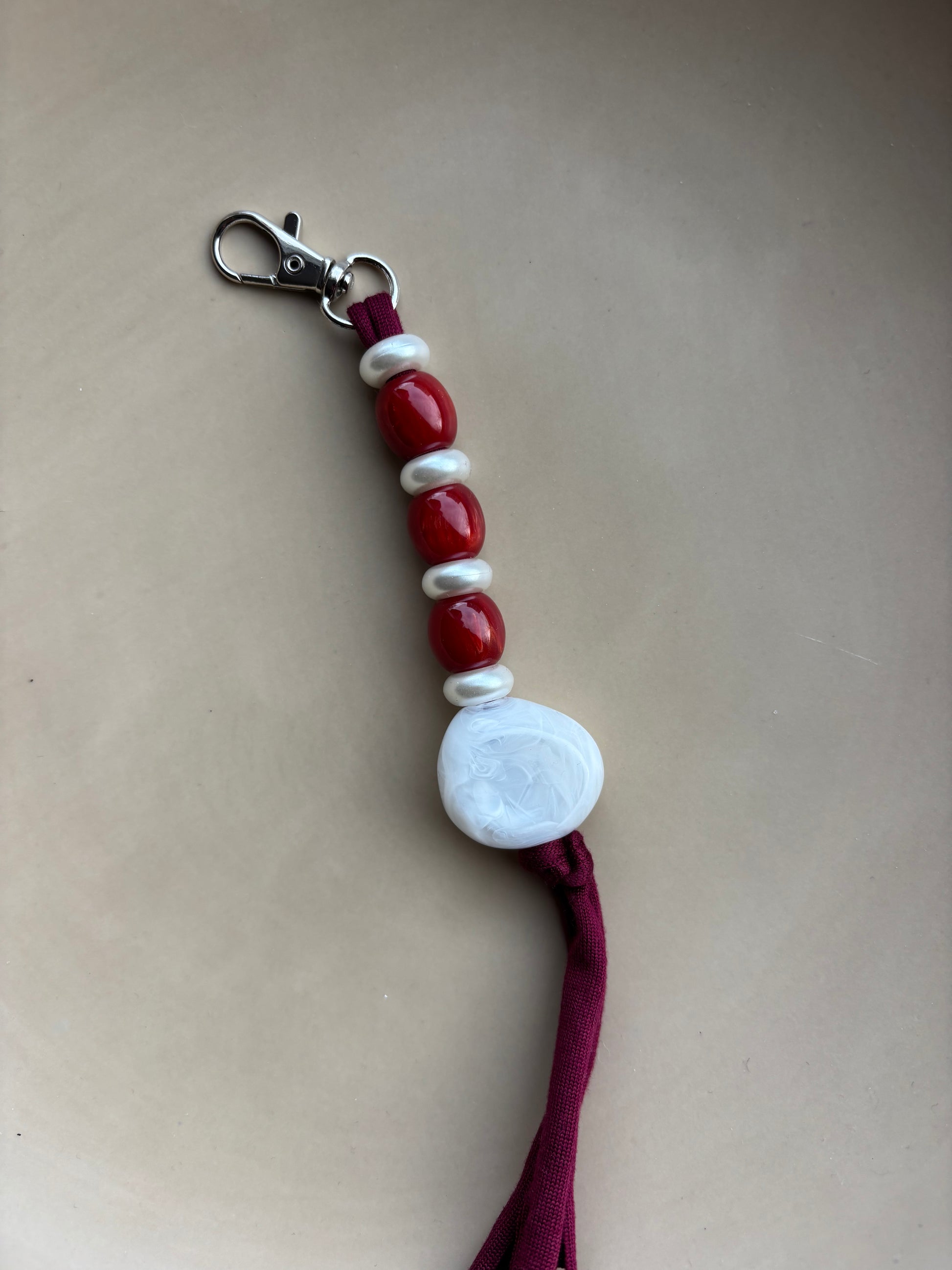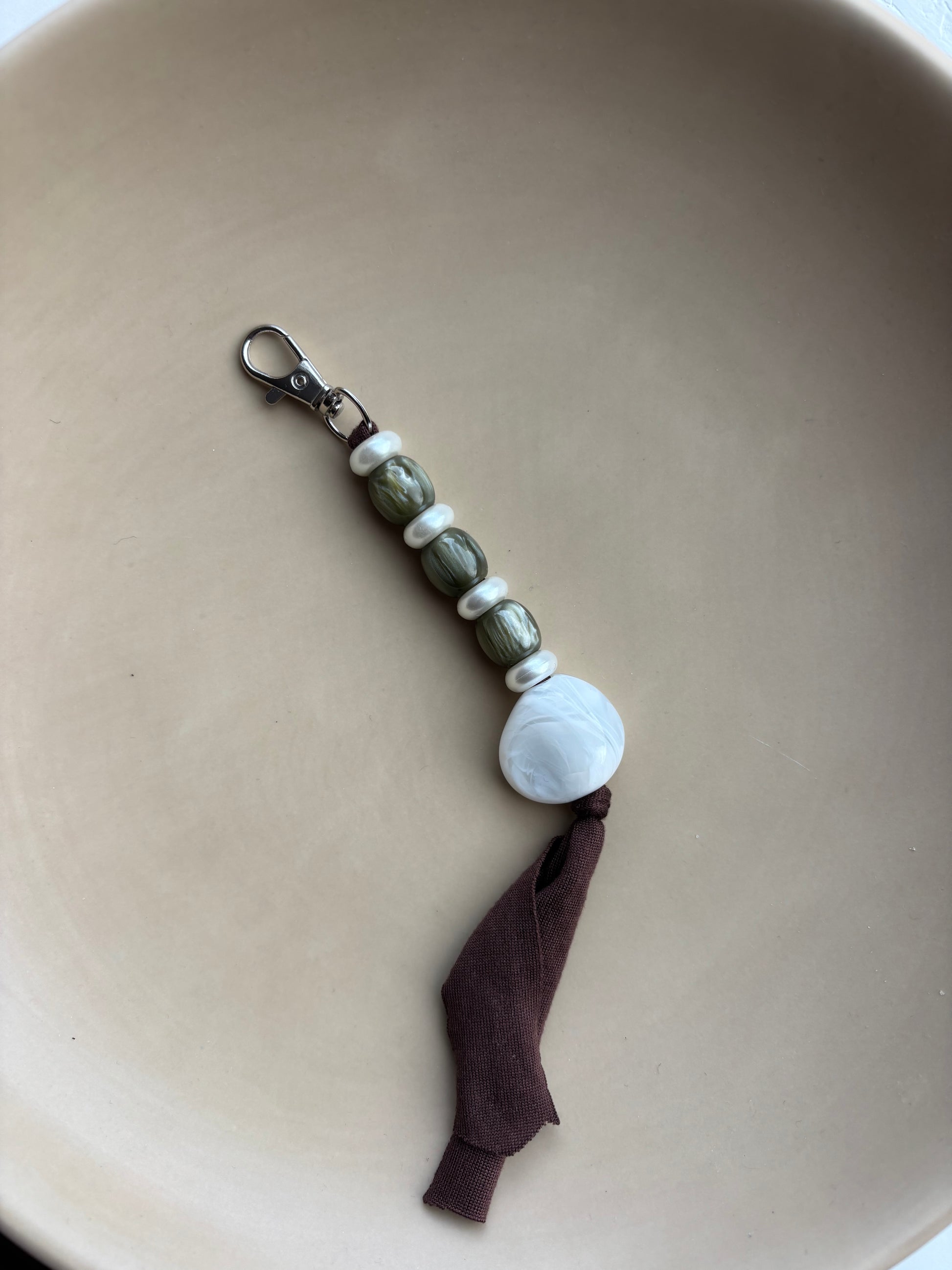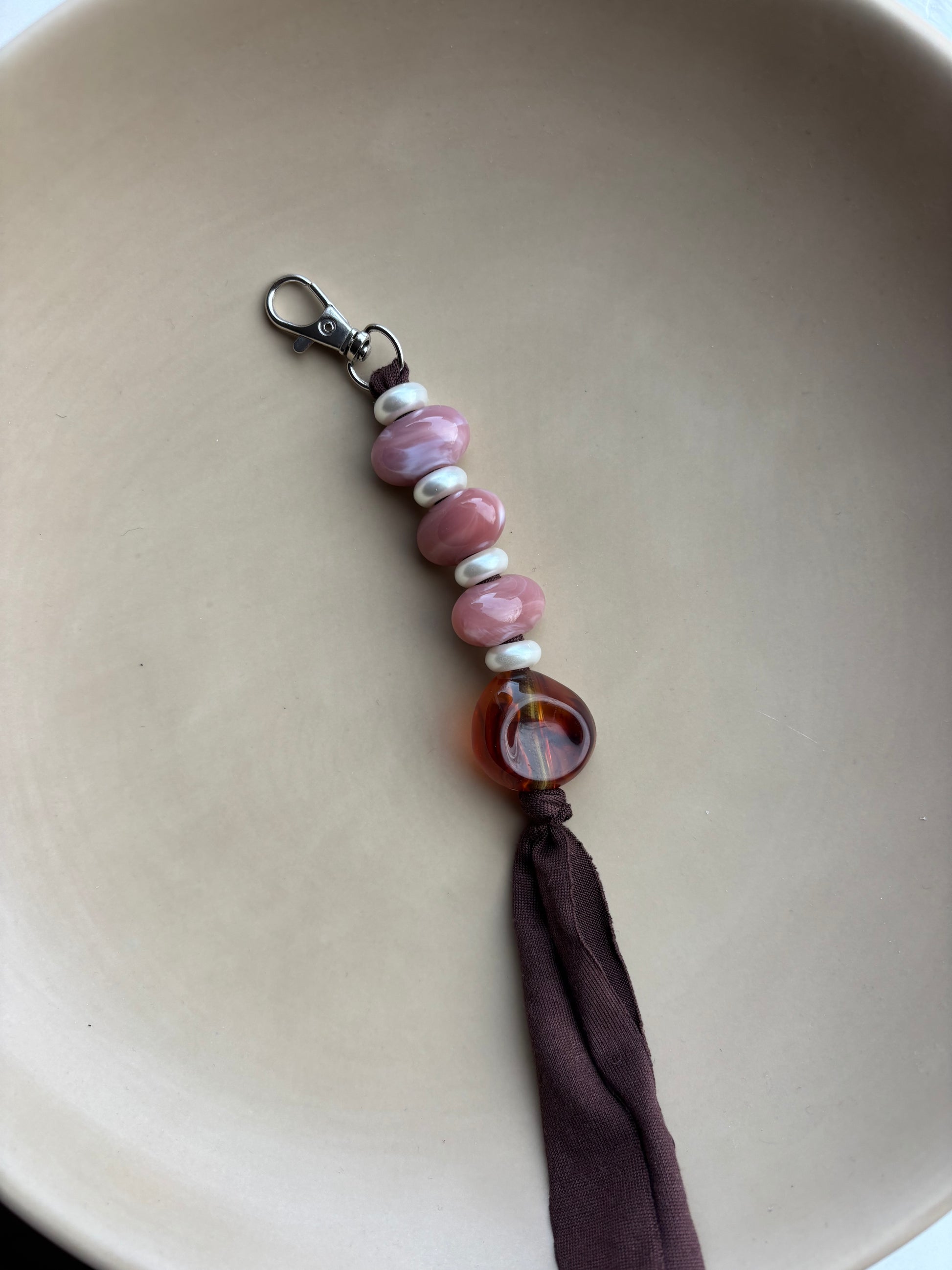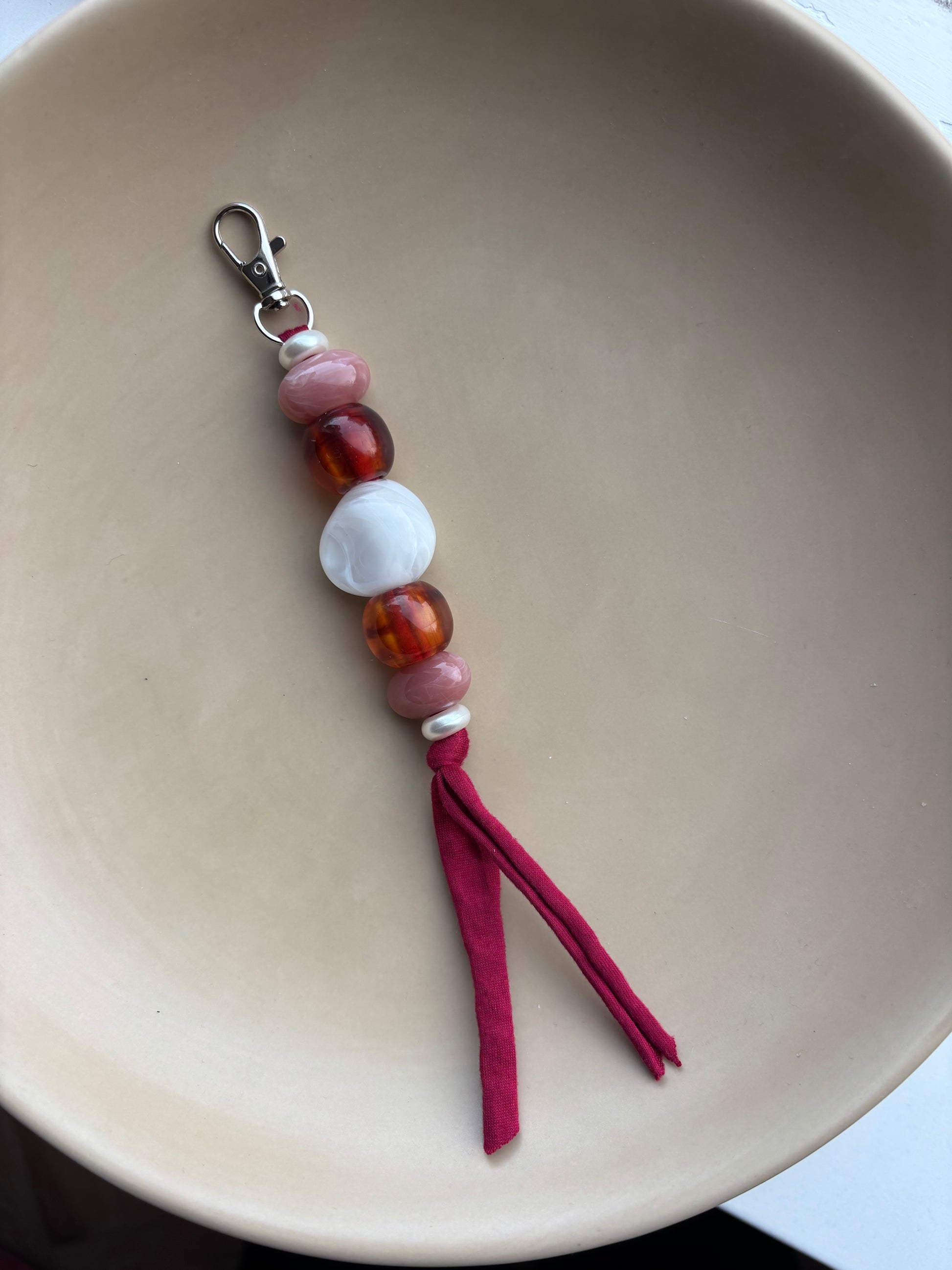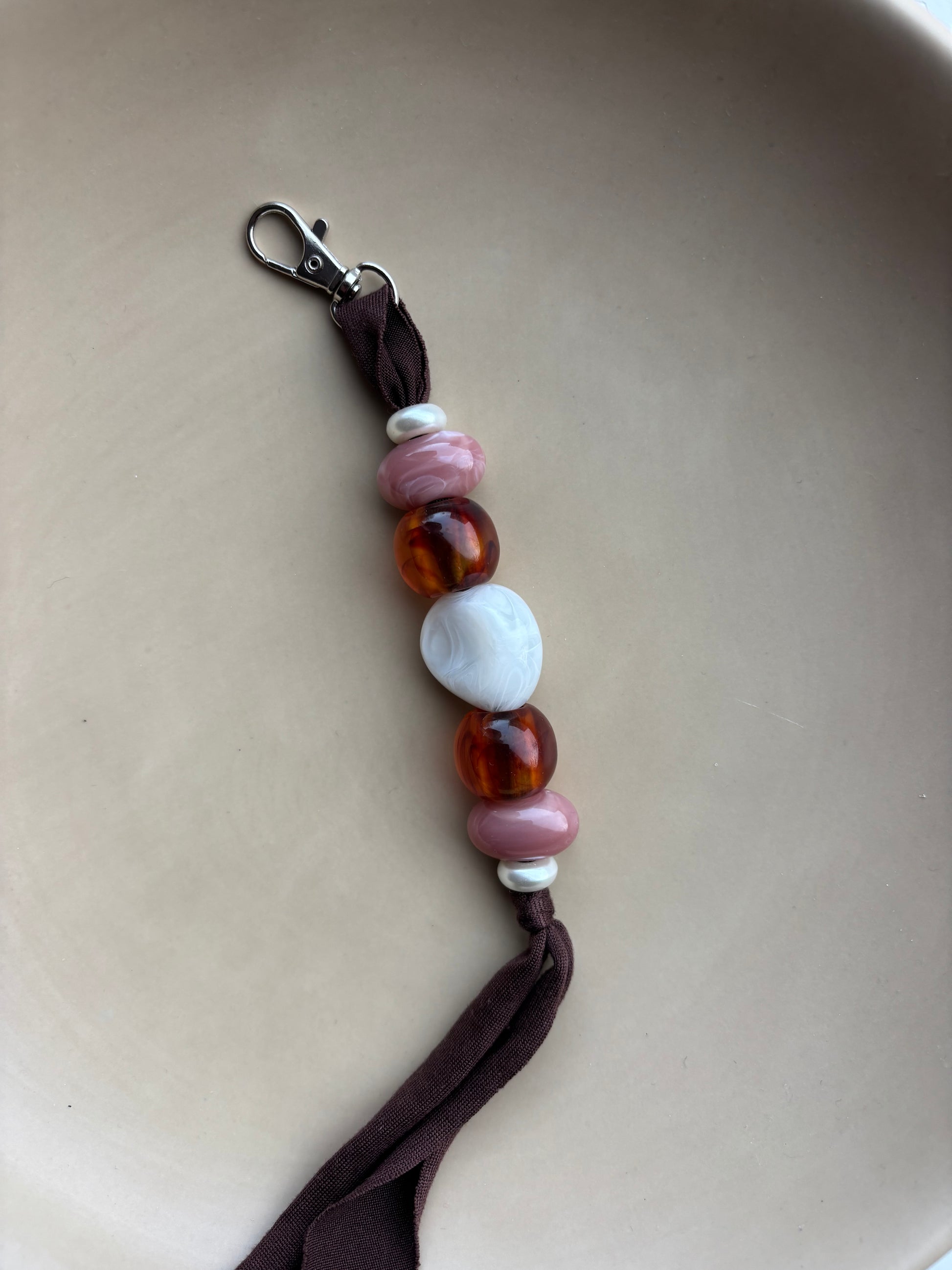 Stijlvol, persoonlijk en altijd handig! Gemaakt met luxe kralen in warme tinten en een zachte stoffen band – elk stuk is uniek én uiteraard met de hand gemaakt.